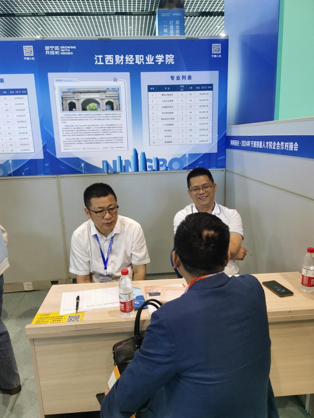 为进一步深化校企合作,拓宽毕业生就业渠道,4月24日,校党委委员刘锋、招生就业处处长周剑带队赴宁波参加“奔甬而来”2024年宁波技能人才校企合作对接会。本次活动由宁波市人力资源和社会保障局主办,省教育厅组织省内40余所高职院校参会,共同推进毕业生就业。