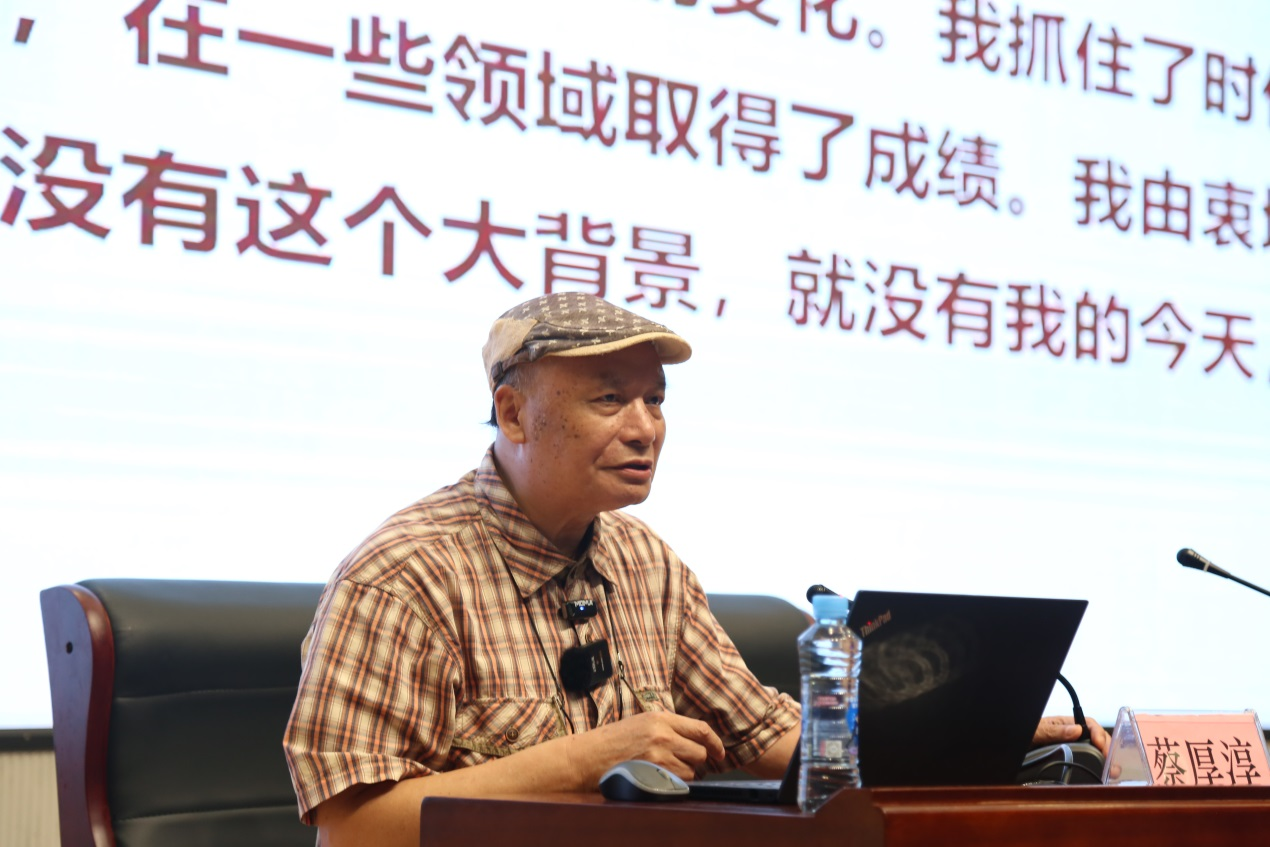在现场交流会上,蔡厚淳教授以“感谢新时代 感谢新生活”为题作了专题报告,他讲述了自己1977年赶上国家恢复高考的机遇,艰苦求学,从而改变自己命运的故事,分享了他在bat365从教28年和退休后在社会上从事中华优秀传统文化传播17年的人生体悟,并嘱托同学们要坚定理想信念,厚植家国情怀,以艰苦奋斗的精神,锤炼自身的意志品格,自强不息,奋斗不止,在建设教育强国的实践中奉献自己的青春和力量。