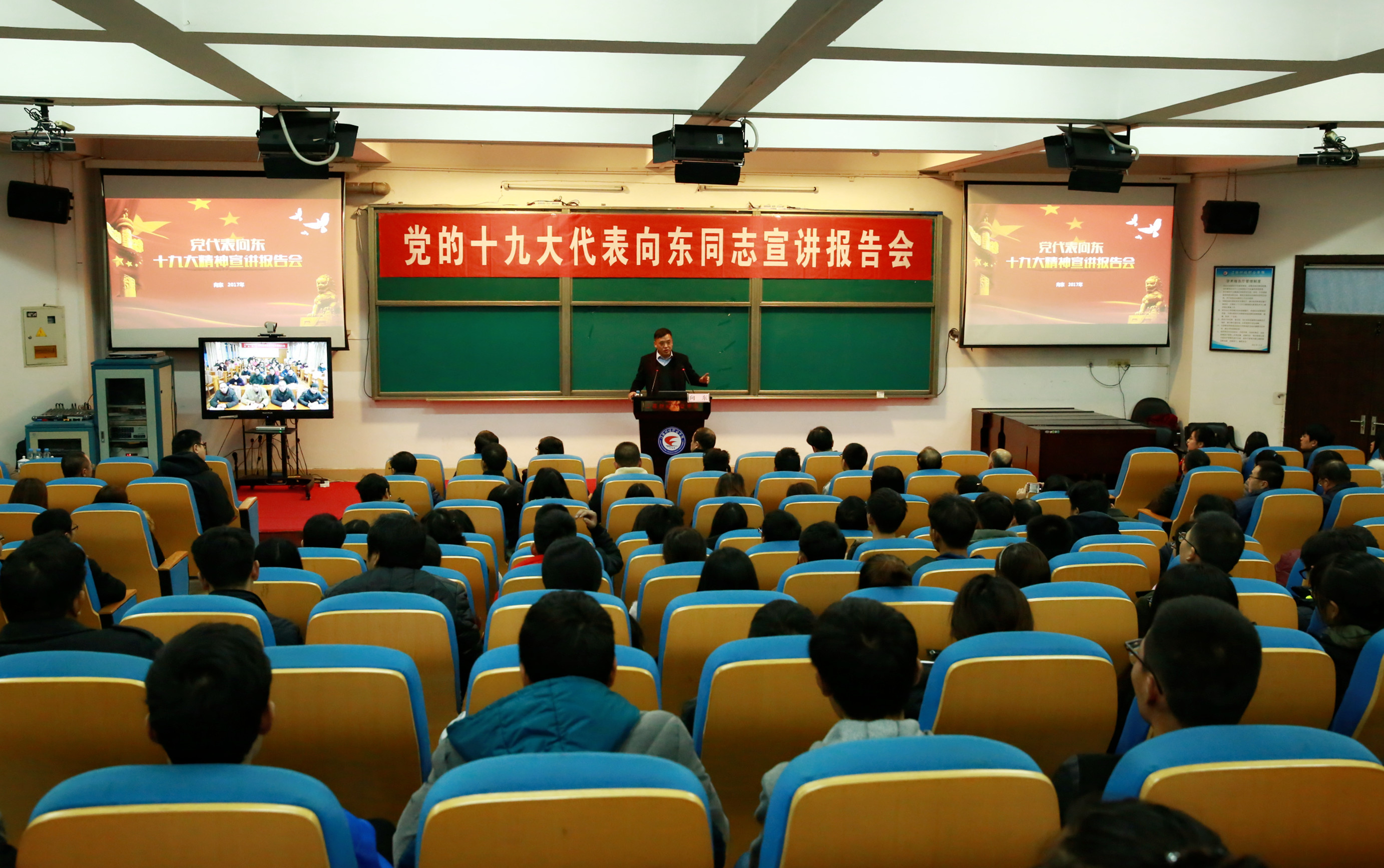 报告会上,向东同志首先介绍了十九大盛况,与师生分享了参加十九大的难忘经历。深刻阐述了党的十九大精神的丰富内涵,并就如何贯彻落实党的十九大精神谈了自己的思考和感悟。报告分四个部分:一是牢记使命,传递老百姓的声音,宣传江西经济社会发展成果,为江西人民代言;二是学习十九大精神,深刻领会习近平新时代中国特色社会主义思想;三是贯彻十九大精神,立足本职,转变作风,在转型升级发展中再立新功;四是履行好党代表职责,在党和群众之间架起连心桥,做人民的好代表。