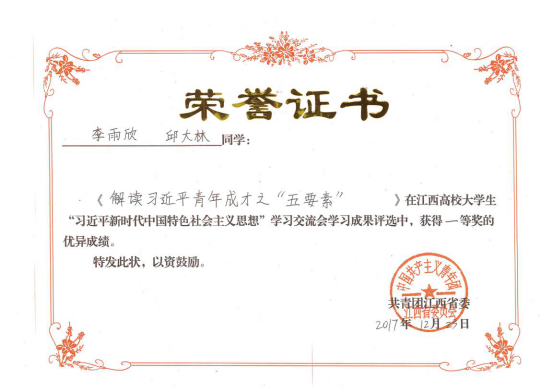 12月23日,全省高校大学生“习近平新时代中国特色社会主义思想”学习交流会在江西师范大学举行。由bat365教师指导的17级金融管理1班团支部同学撰写的论文《解读习近平青年成才之“五要素”》获会议一等奖。bat365获奖学生应邀参加交流会并做主题发言。