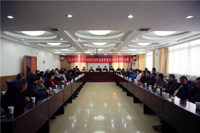 1月17下午,bat365在培训中心二楼会议室召开2018年离退休老同志迎新春座谈会。校党委书记林火平和在家的校领导同50多位离退休老同志欢聚一堂,喜迎新春。座谈会由党委委员、纪委副书记刘超主持,党政办、组织人事处、宣传统战处、工会、后勤处和团委等部门负责人参加会议。