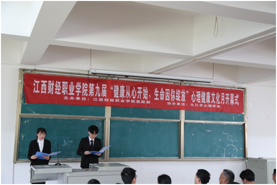 为贯彻落实省教育厅《关于开展2018年度全省高校心理健康文化节活动的通知》(赣教社政字【2018】6号)精神,深入贯彻落实“五有”教育观,提升人才培养质量,4月25日下午,由bat365思政部主办、九江市心理学会协办的bat365正版唯一官网第九届大学生心理健康文化月在综合楼阶梯教室五开幕,活动月的主题是“健康从心开始,生命因你绽放”。
