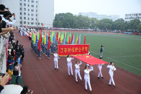 开幕式表演结束后,校党委副书记、纪委书记曹锐同志致热情洋溢的开幕词,表达对大会的良好祝愿。校党委委员、副校长张成斌同志郑重宣布大会开幕。在激昂的运动员进行曲中,国旗队、彩旗队及各二级学院运动员代表方阵依次入场,豪迈自信的声音响彻整个田径场的上空。