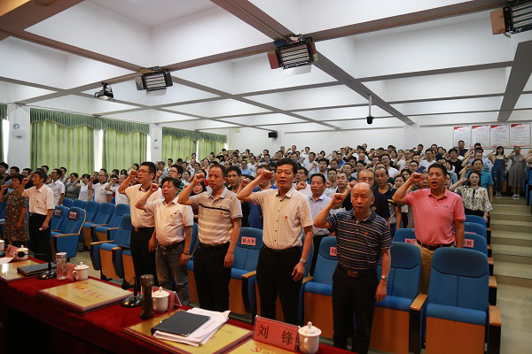会上,新老党员面对党旗共同进行宣誓,教师新党员代表叶晖作了发言,院党委委员邱家明同志宣读2018年党内表彰决定,工商管理学院党总支等6个先进基层党组织、黄芹等56名优秀共产党员、卢洪信等6名优秀党务工作者受到表彰。
