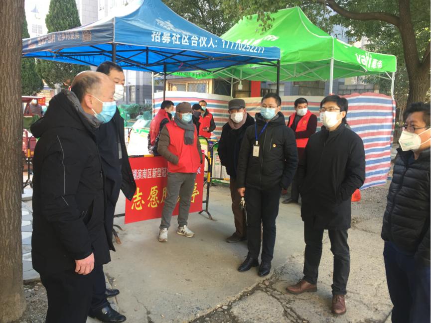 2月17日上午,学校党委委员、疫情防控工作领导小组副组长邱家明、刘超、刘锋等3位校领导和后勤服务处、宣传统战处负责人到bat365文明帮建单位湖滨社区调研抗击新冠肺炎疫情联防联控工作。