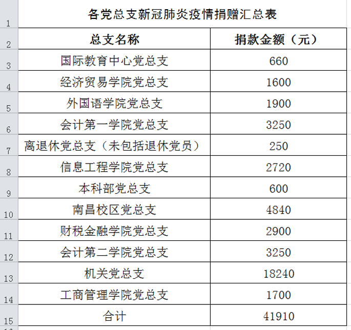 此次捐款充分尊重党员意愿,坚持自觉自愿、量力而行。校领导班子成员以身作则、率先垂范,带头捐款;学校各党总支迅速行动,广泛动员,积极倡议;全校在职党员纷纷响应,积极奉献爱心,踊跃自愿捐款,以实际行动表达对新冠肺炎疫情防控工作的支持。截至3月5日,全校357名在职党员通过现金捐献、微信(支付宝)转账等形式参与了捐款,捐款金额共计41910元。该款项已通过九江市直工委转至抗战一线助力疫情防控。