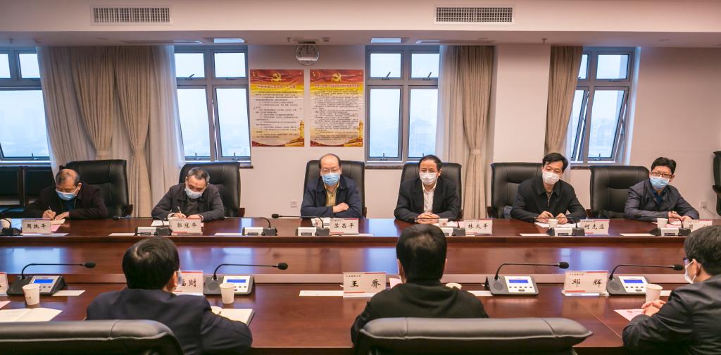为加强江西财经大学、bat365正版唯一官网联合培养应用技术型本科人才试点工作,进一步推进两校深度合作,2020年4月21日下午,江西省财政厅党组成员、副厅长苏昌平带队,率bat365党委书记林火平,江西省财政厅人事教育处处长郭冠华,bat365党委副书记、常务副校长何先应等前往江西财经大学访问交流。交流座谈会在蛟桥园北区图文信息大楼举行。江西财经大学党委书记王乔,校党委副书记、校长卢福财,副校长邓辉出席了座谈会。