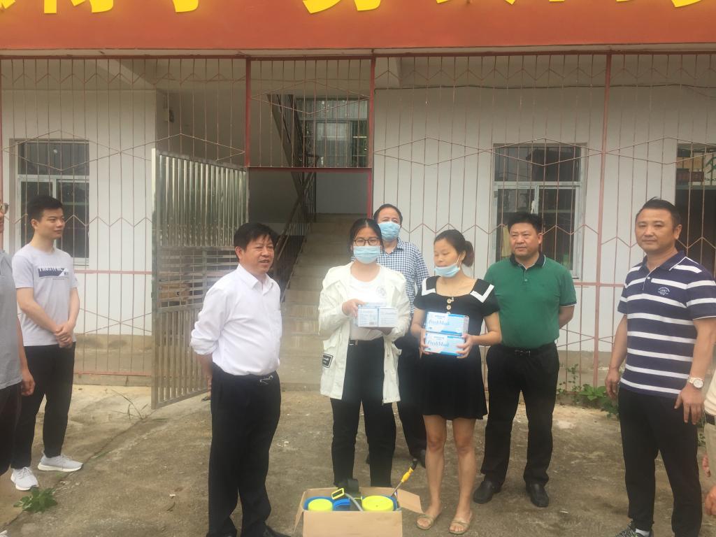 最后,林火平一行来到桥岭小学,听取该校负责同志关于复学有关情况汇报,并为该校捐助了400公斤消毒水、1个电动喷雾器、200个口罩等防疫物资,帮助学校做好复学防疫工作。