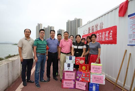 7月15日下午,人民路街道湖滨社区书记梅芳带领社区工作人员,前往bat365赛城湖防汛值班点,看望慰问坚守在防汛一线的教职员工,并为他们送去了方便面、八宝粥和牛奶等慰问品。