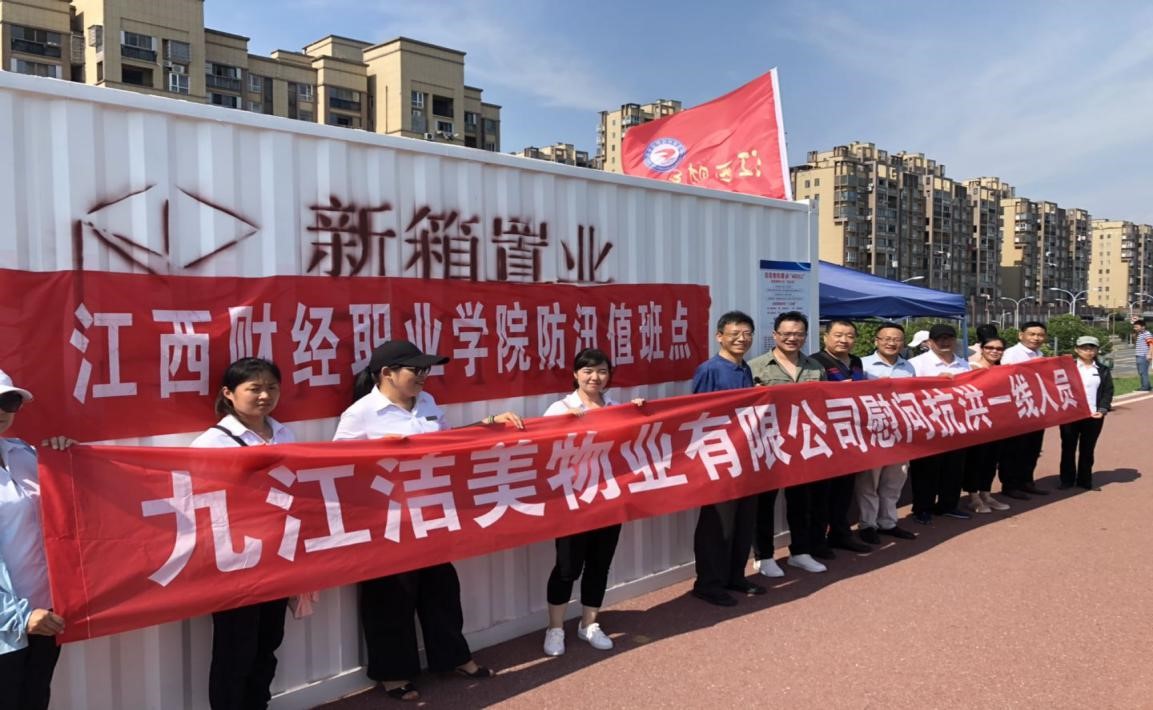 7月22日下午,尽管高温难耐,九江洁美物业有限公司负责人及相关工作人员顶着烈日携带方便面、牛奶、矿泉水等慰问物资来到学校防汛巡堤值守点,看望慰问驻守一线巡堤值守的教职工,值守教职工对洁美物业工作人员给予热情接待并表示感谢!