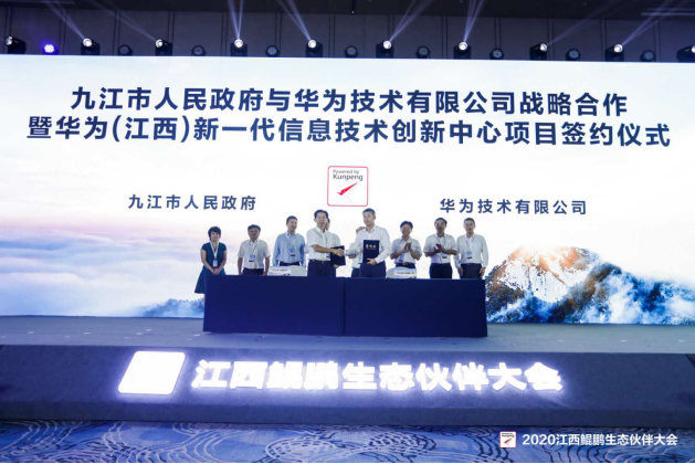 在本次大会上,九江市人民政府与华为达成战略合作,并宣布共建华为(江西)新一代信息技术创新中心。九江市人民政府副市长李小平,华为公司江西区域副总经理张涛代表双方签署合作协议。本次合作旨在发挥九江市的区位、人才、生态、软件和信息技术服务业等优势,结合华为的技术储备和产业整合能力,通过华为(江西)新一代信息技术创新中心促进九江市数字经济产业发展,重点围绕鲲鹏、人工智能、5G、工业互联网、区块链等新一代信息技术,加速政府信息技术应用创新的进程,助力九江市传统产业转型升级以及新兴产业发展。