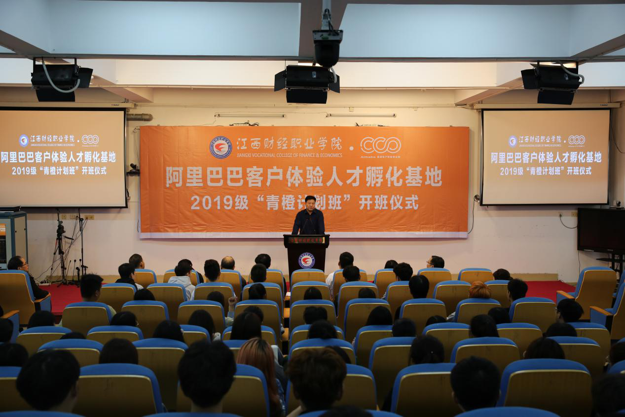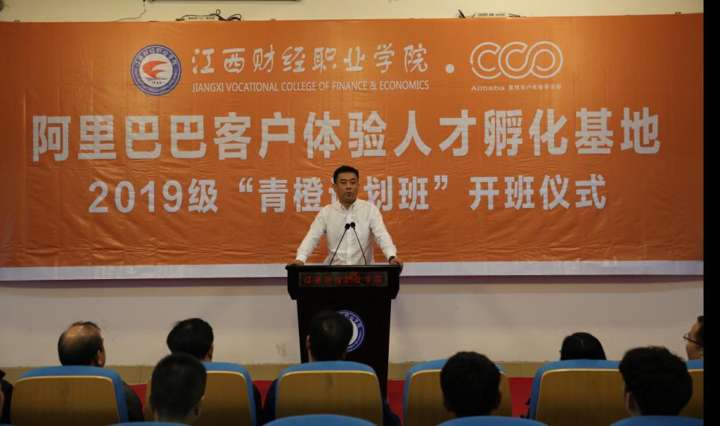 刘彪文在致辞中指出,今年8月教育部与江西省人民政府联合发布《关于整省推进职业教育综合改革提质创优的意见》,拉开了江西职教综合改革提质创优序幕。作为全球领先的电商企业,阿里巴巴在职业教育的发展变局中要充分体现企业的社会担当,希望阿里巴巴与bat365正版唯一官网一道,以共建人才孵化基地、组建校企合作班为契机,深化产教融合、校企合作,为打响江西职教创新发展高地品牌,推进江西高质量跨越式发展贡献企业智慧。对于参加“青橙计划”班的2019级学生,刘彪文校长希望同学们能够树立“青出之蓝而青于蓝”的大志气,秉承是阿里巴巴橙色文化所承载的“快乐、热情、希望”寓意,结合自身发展定位,在基地入项学习中的不断提升综合素质和能力。