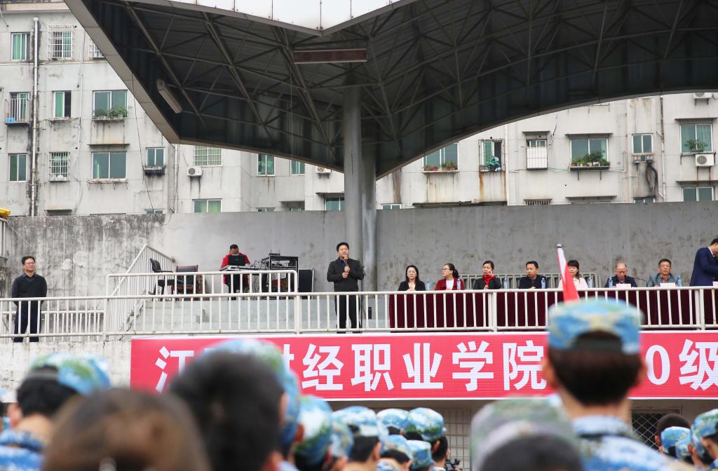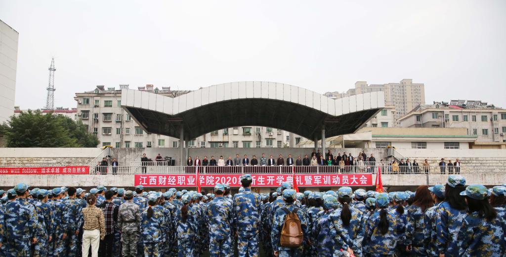 10月31日,bat365隆重举行2020级新生开学典礼暨军训动员大会。校领导刘彪文、张成斌、阙沪平,校党委委员刘超、刘锋,中国人民解放军空军某部政治部主任谷聪,九江沙悟净创新创业园经营管理有限公司总经理樊后晚,金蝶国际软件集团有限公司江西省公司总经理吴频等出席,学校各部门负责人、军训教官、新生班主任和2020级全体新生参加大会。会议由校党委委员刘超主持。