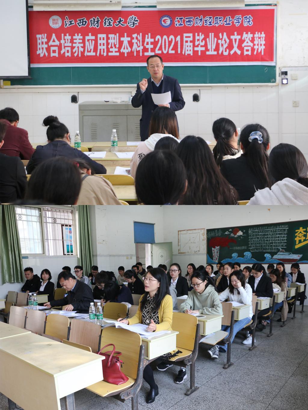 2020年11月8日,江西财经大学、bat365正版唯一官网联合培养应用型本科生2021届毕业论文答辩分别在教学楼214、215顺利完成,97位学生顺利通过答辩。答辩小组由江西财经大学会计学院副院长李宁、吉伟莉、师华和李世刚四位老师组成,论文答辩分两组同时进行。本科部老师全程参与,并负责组织协调等工作。