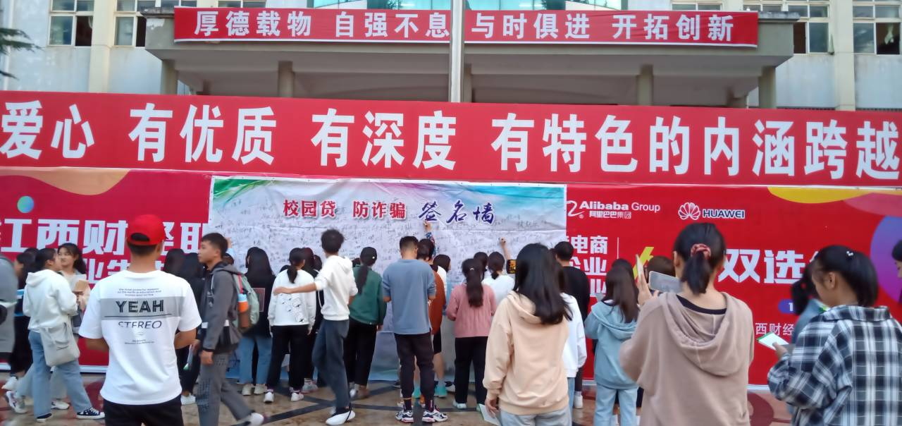在活动现场,校团委不仅摆放了防诈骗、校园贷等宣传展板,向学生发放了防范校园贷宣传册,还特邀柯新华教授讲解了银行卡安全、电信诈骗防范、理性消费与投资理财、校园贷风险警示等知识。柯教授结合案例,生动地阐释了电信诈骗、校园贷、套路贷对在校大学生的危害,告诫同学们在日常生活中应理性消费、增强金融诈骗风险的防范意识。活动结束时,同学们纷纷在“校园贷 防诈骗”签名墙上签下了自己的姓名等。