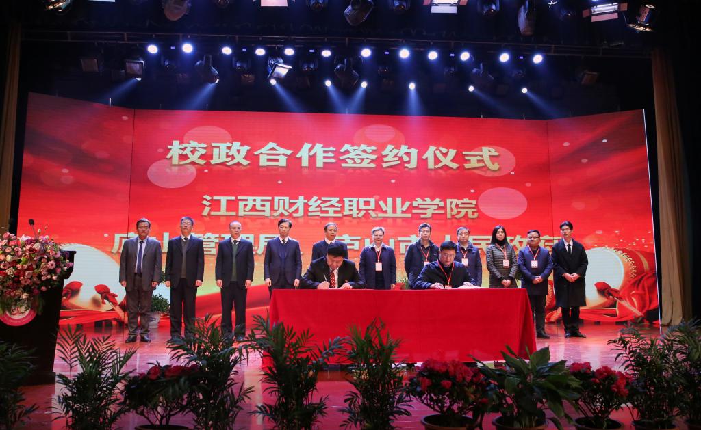 会上,学校与庐山管理局、庐山市人民政府,新道科技股份有限公司等七家单位签订了校政、校企合作协议。