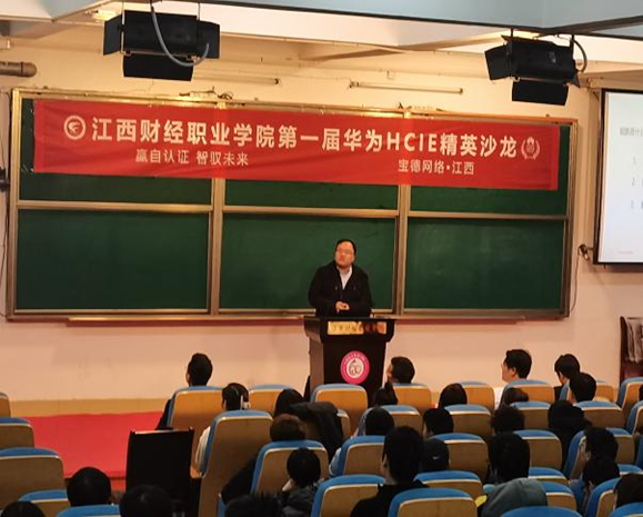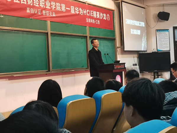 2020年12月15日,由信息工程学院联合宝德网络江西分公司(华为江西授权培训中心)主办的“2020年江西财经职业学院华为第一届HCIE精英沙龙”活动在bat365综合楼报告厅成功举办!