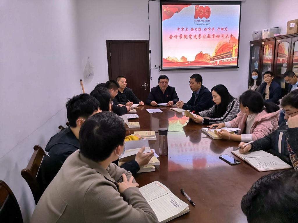 为深入学习贯彻习近平总书记在党史学习教育动员大会上的重要讲话精神,按照省委和校党委关于党史学习教育动员大会的工作要求,3月31日下午,会计学院在红楼212办公室召开党史学习教育动员大会。会议由党总支书记张家顺主持,全体党员教职工参加会议。