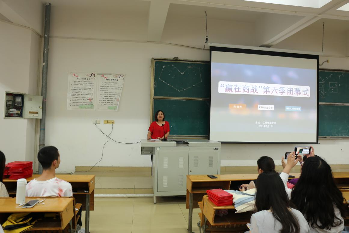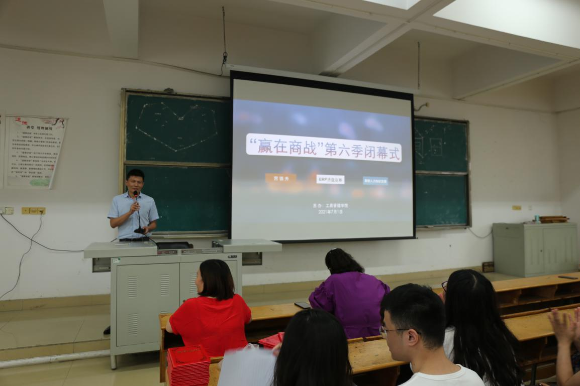 7月1日,工商管理学院于综合楼阶梯教室6举办了“赢在商战”第六季颁奖典礼暨闭幕式。出席活动的领导和嘉宾有工商管理学院党政班子、新道科技股份有限公司江西分公司区域经理王文江。工商管理学院专业教师及近300名参赛学生参加了大会。