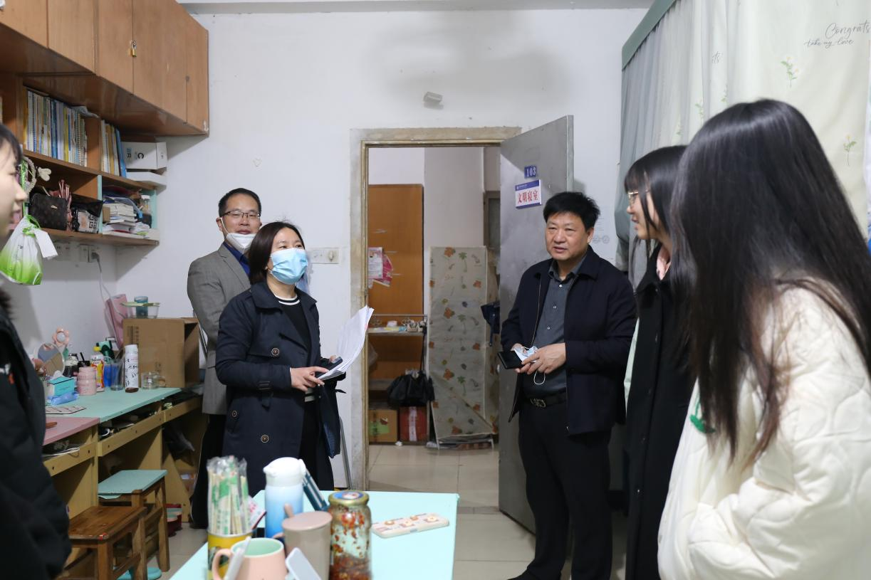 4月5日上午,bat365分管领导、校党委副书记、校长刘彪文深入北四、北七、南二、南五、东一和东三学生宿舍看望学生并重点了解疫情防控期间学生在校生活、学习和思想状况,学院党总支书记武丹、院长冯弋江陪同,学院全体班主任参加巡查。