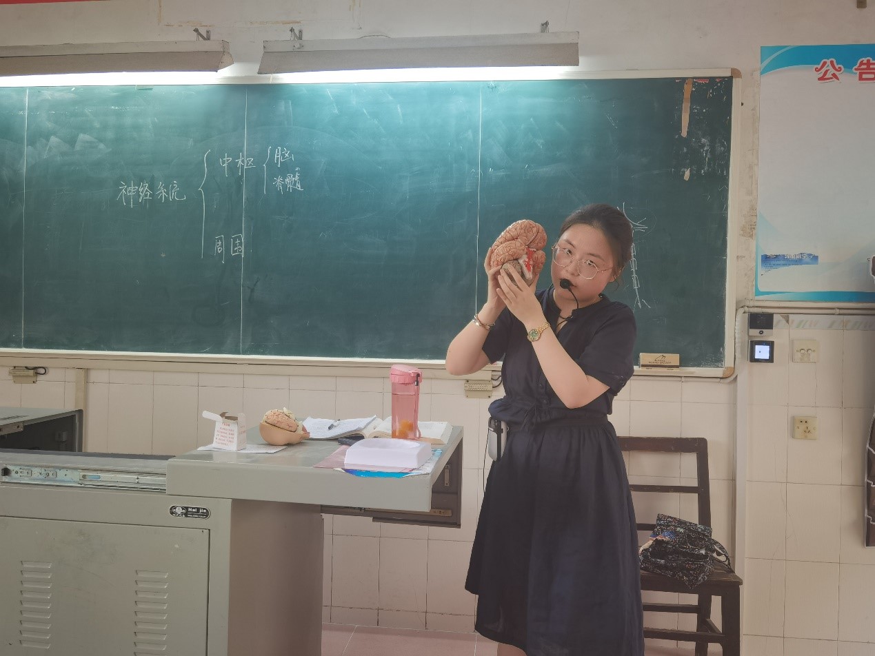 6月1日下午第7、8节课,心理咨询专业教研室余曼菁老师在103教室讲授《神经系统的解剖与生理》教学公开课。余老师利用名家名言导入课程,引发学生深层思考,教学设计思路清晰,课堂实施较好,师生互动良好,语言清晰有逻辑,擅用教具进行直观教学。在对知识点的把握上,余老师深入浅出,诙谐幽默,结合实际,将原本枯燥的内容讲的生动有趣,给各位观摩教师留下了深刻印象。