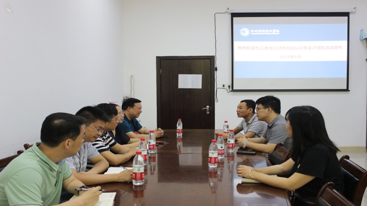 为推动校企合作,深化产教融合,6月8日上午,会计学院与九江老账人财务咨询公司举行校企合作交流会。会计学院院长万凯、书记张家顺代表学院致辞,对九江老账人财务咨询公司一行人的到来表示了热烈欢迎,院长万凯向公司来访人员简要介绍了学校的历史和发展现状,指出bat365高度重视产教融合、校企合作工作,期待未来能与九江老账人财务咨询公司加强合作、互利共赢。