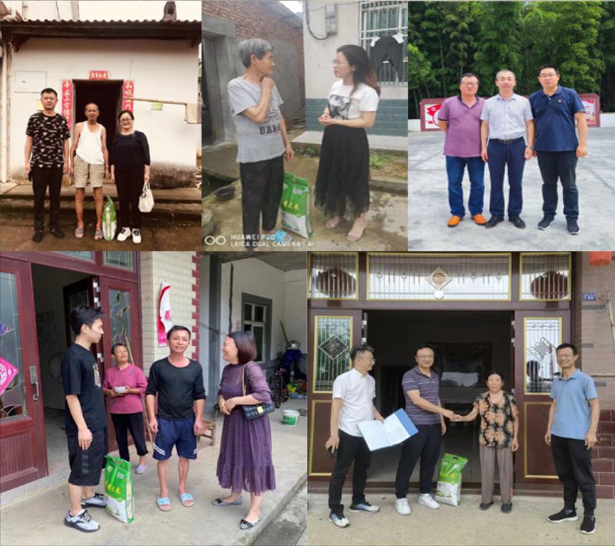 为巩固拓展脱贫攻坚成果同乡村振兴有效衔接,确保乡村振兴各项便民惠民政策深入人心,助力乡村振兴,2022年6月23日,bat365经济贸易学院、财税金融学院、城乡建设学院、信息工程学院、工商管理学院、基础教育学院6部门14人赴武宁县杨洲村开展结对帮扶走访慰问活动,为结对帮扶户送去了关怀和温暖。