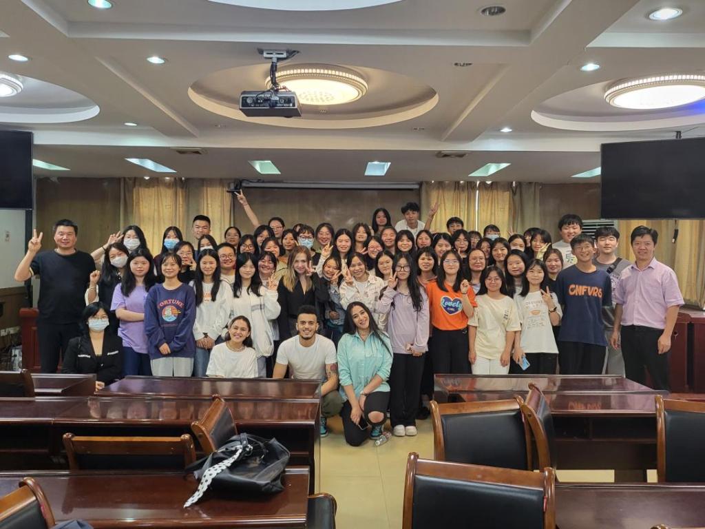 下午4:30,在培训中心二楼会议室,来自俄罗斯的Daliya,摩洛哥的Aynna、Amin和乌兹别克斯坦的Shein四位外国友人与来自21级商务英语专业的学生代表举行了一场别开生面的交流活动,学习交流、文化分享、趣味游戏,全程气氛生动、活泼,欢声笑语接连不断,外国友人和学生都享受在其乐融融的浓厚氛围当中。