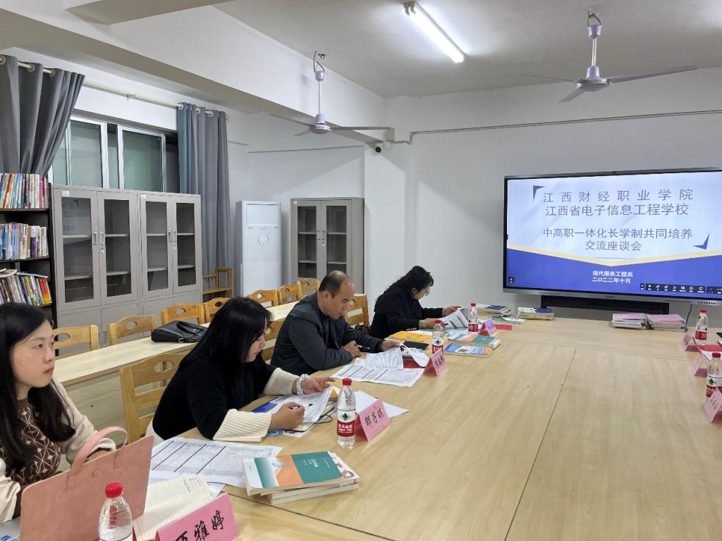 江西省电子信息工程学校现代服务工程系主任石婷婷、会计事务专业教研组长罗屹人以及刘美、熊海兰、许青青等骨干老师热情地接待了bat365教师,对bat365一行表示热烈的欢迎。石主任详细介绍了学校的组织架构、招生规模、师资队伍以及发展规划。负责大数据与会计(业财数智化融合)专业中高职合作班的会计事务专业教研组长罗屹人老师详细介绍了会计专业的招生情况、班级管理以及学科竞赛等情况。