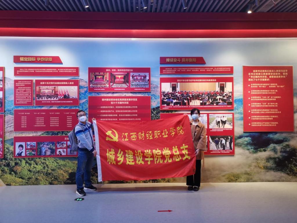 为全方位、立体式了解赣南等原中央苏区砥砺前行、奋勇争先的奋斗史、发展史和成就史,根据校党委宣传部统一安排, 城乡建设学院于2022年10月组织教职员工参观了《奋进新时代 书写新荣光--喜迎党的二十大 苏区振兴十周年成就展》,并紧紧围绕“献礼党的二十大”主题主线,现场开展了学习教育。