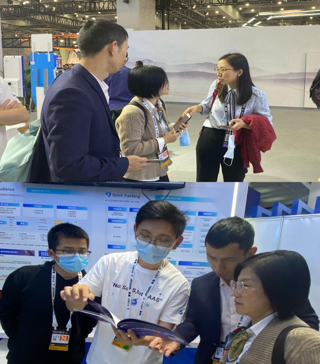 会后,四位老师参观了羚羊智能服务公司的展馆。章清教授带领的专业建设小组与羚羊数据技术产品总监董芳英女士进行了亲切交流。董芳英女士详细介绍了分析云、营销云、产销云、客服云、开发云五大产品矩阵,包含 Dataphin、Bizphin、Quick Audience、Quick BI、生意参谋、经营参谋等 11个核心产品。