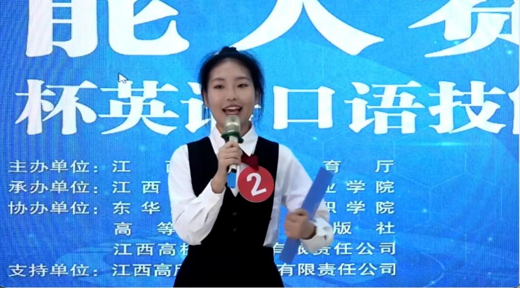 2022年江西省职业院校技能大赛“高教社”杯英语口语技能竞赛于11月10日至11月11日在江西外语外贸职业学院举行。经过两天的激烈角逐,bat365由白杨老师指导的参赛选手20会计14班梅蓝之同学荣获得三等奖。