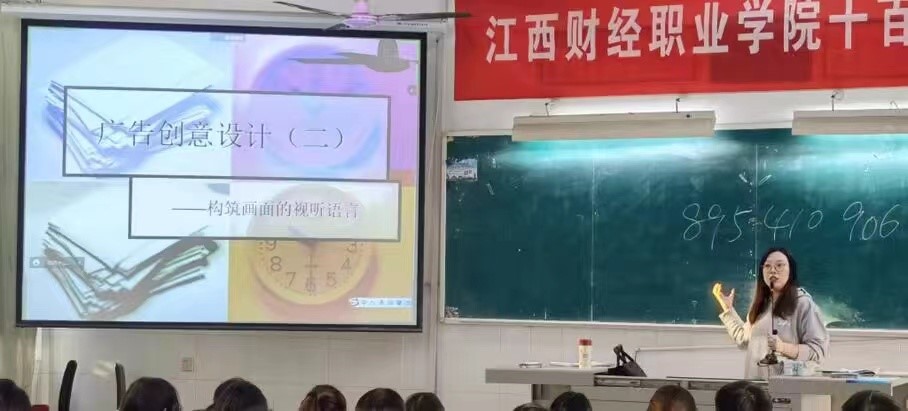 10月12日下午,中文教研室叶倩虹老师在308教室开展《广告创意设计——构筑画面的视听语言》教学公开课。叶倩虹老师从课程回顾开始,采用启发式教学方法,分析讲解极具视听感的广告案例,引导学生理解广告中的中国优秀传统文化及视听语言的构成要素,将理想信念教育有机融入了课堂教学中。整堂课教学内容丰富,课堂气氛活跃、师生互动热烈,取得了良好的教学效果。