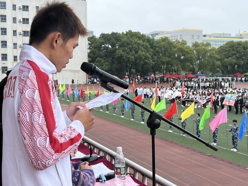 运动员代表20建筑工程技术1班曾荣城同学对运动精神宣誓。