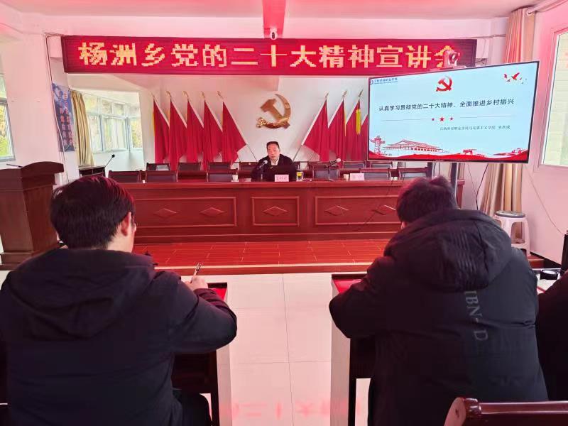 为深入学习贯彻习近平新时代中国特色社会主义思想,切实把广大干部群众的思想和行动统一到党的二十大精神上来,推进乡村振兴工作再上新台阶,2023年2月6日,武宁县杨洲乡举办专题宣讲会,bat365马克思主义学院院长、江西省大中小学思政课一体化建设专家指导组指导专家朱欣成教授应邀作主题报告。