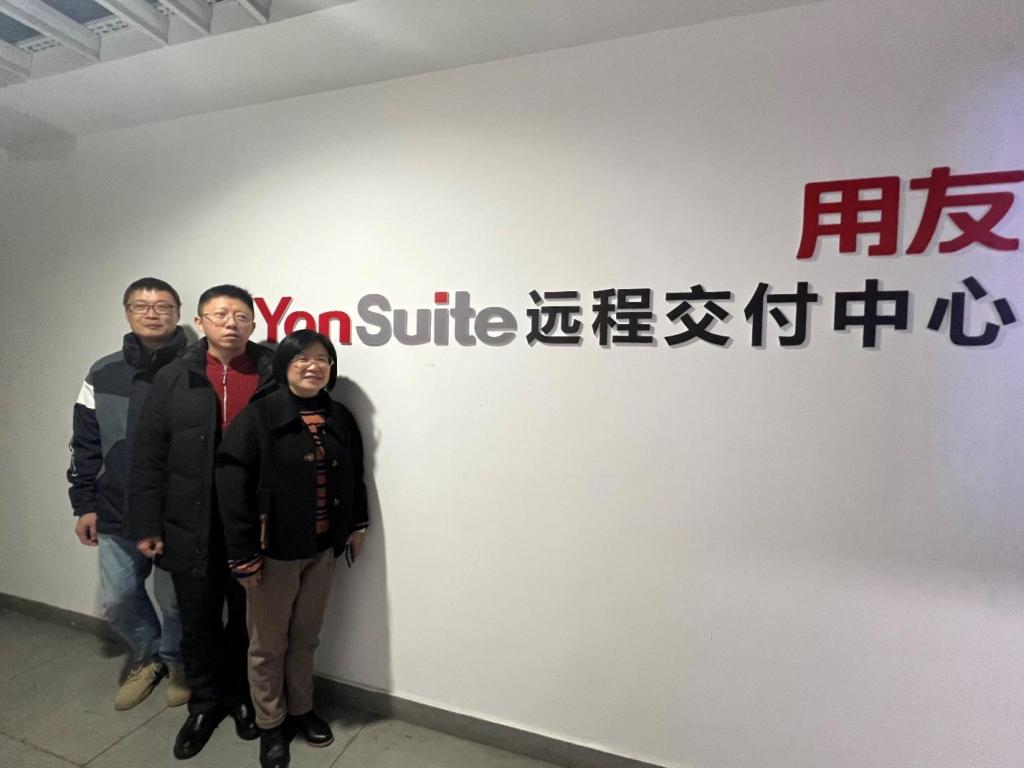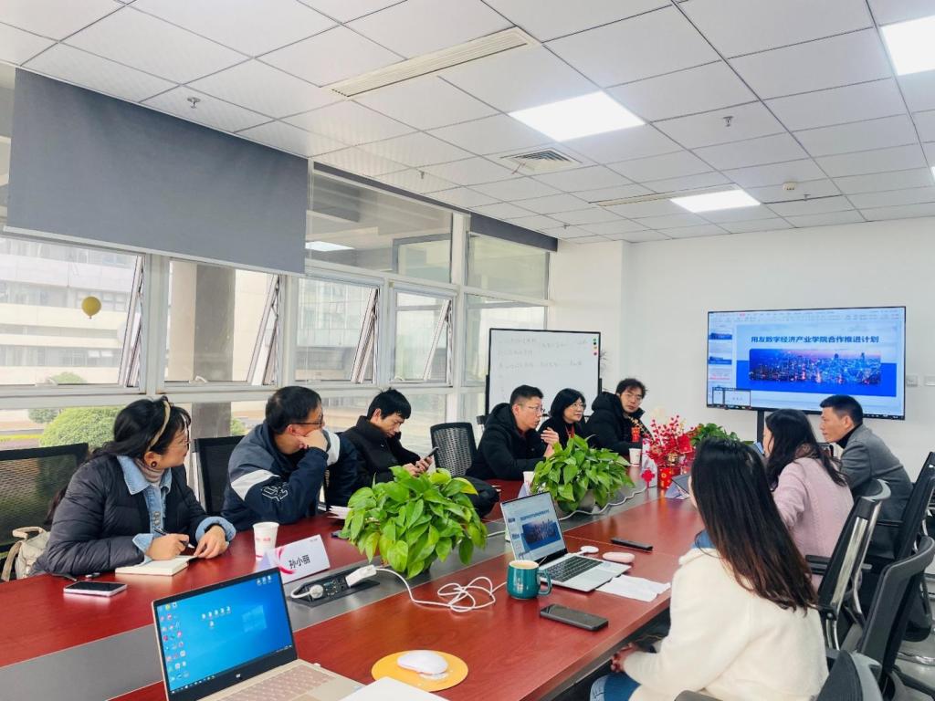 为了促进和深入开展校企合作、协同育人,落实“用友YonSuite合作班”项目,充分体现校企合作共建的科学性、专业性、规范性以及前沿性,进一步深化数字经济学院与用友新道科技股份有限公司合作,2023年2月9日,数字经济学院副院长谭宏及数字经济学院教师李江副教授、孙小丽副教授,会同数字经济专业建设小组章清教授、方道华副教授及陈石博士一行赴南昌用友公司进行走访交流。用友新道科技江西区总经理丁立波、江西区副总经理王文江等热情接待了谭院长一行。