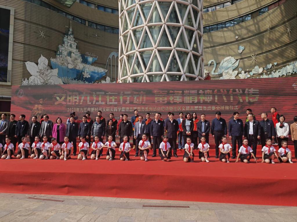 3月5日上午,由九江市委宣传部、市创文办、市文明办、团市委主办的2023年九江市新时代文明实践学雷锋志愿服务系列活动启动暨社区文明志愿服务理事会授旗仪式在联盛快乐城广场举行。九江市委常委、宣传部部长孙金淼宣布系列活动启动。基础教育学院的学生代表们作为人民路街道幸福里社区志愿者参与了本次启动仪式。