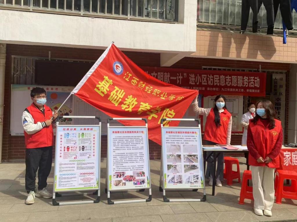 活动现场,基础教育学院志愿者们为社区群众发放《九江市“我为文明献一计”进小区访民意调查表》《致市民一封信》等创文宣传品。收集群众需求和对文明城市创建工作的意见建议,并就垃圾分类、文明旅游、文明养犬、文明交通等城市文明行为进行倡导,以实际行动让文明扎根。