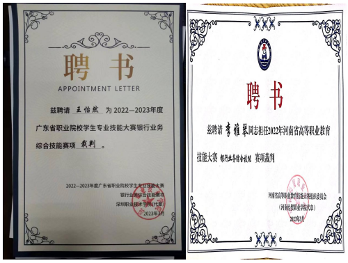 3月18日,财税金融学院党总支副书记王怡然应邀参加2022—2023年度广东省职业院校学生专业技能大赛,并担任裁判。3月24日,bat365专职教师李雅琴被聘请担任2022年河南省高等职业教育技能大赛“银行业务综合技能”赛项裁判。两位教师以扎实的业务能力、高度的责任心圆满完成了任务,展示了bat365教师良好的精神风貌与职业素养。