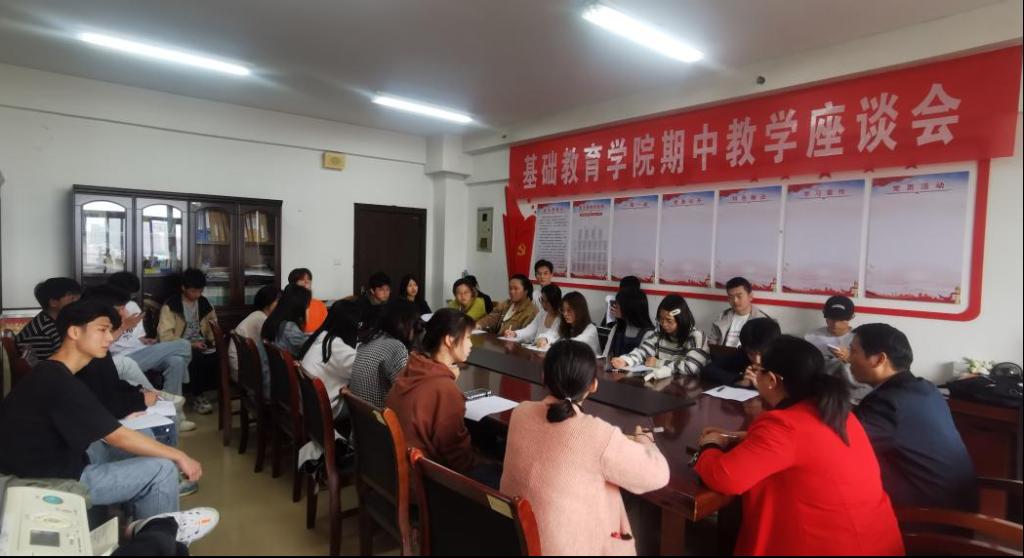 为了促进教风、学风建设,加强教学过程管理,进一步了解bat365教师授课情况和相关课程学生学习情况,2023年4月27日下午,基础教育学院在综合楼1119会议室举办2022-2023学年第2学期期中教学座谈会,会议由副院长吕扬主持,党总支副书记沈克旻,各教研室主任、教师代表及2021级、2022级各班学生代表参加了此次会议。