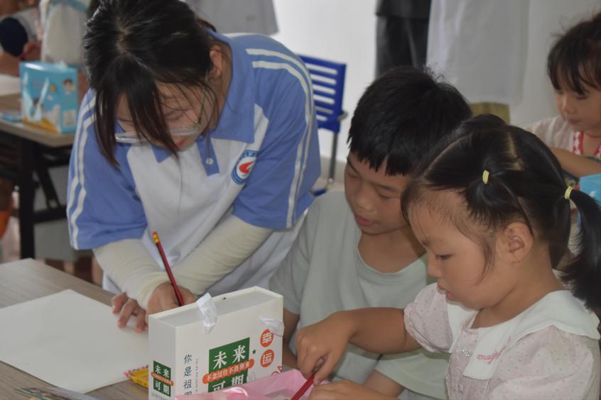 图为实践团队成员在洞村文化站开展绘画活动