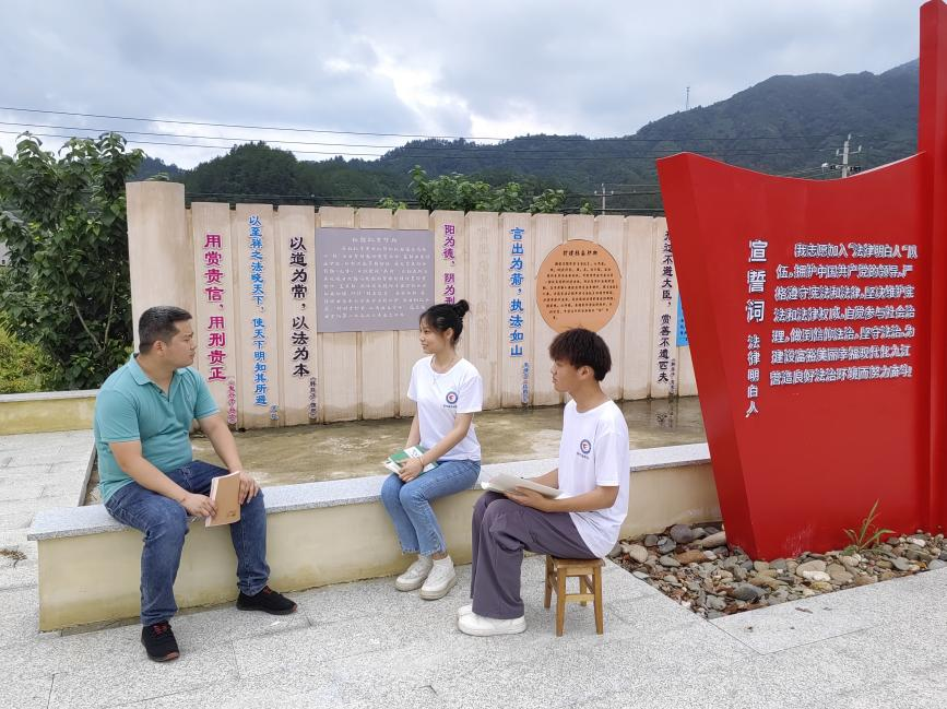 实践队贯彻落实全省“八五”普法规划,广泛开展《中华人民共和国民法典》《中华人民共和国未成年人保护法》等法律法规宣传教育,共建法治乡村。充分利用现有法治宣传资源——组织村民在“法律明白人”广场观看普法宣传视频,在梅颜村新时代文明实践站为村干部及普通村民进行“美好生活•民法典相伴”为主题的宣讲活动。有效交谈共“话”法治——为更好地了解本村法治现状,梳理矛盾纠纷化解中的难点痛点,队员同村干部进行面对面访谈,运用专业优势,提出相应可行建议;走访村组,队员深入基层,向村民发放普法宣传手册和书籍,对基本内容进行讲解,并且针对村民提出的问题进行耐心细致解答。乡村普法宣传着重加强了乡村“法律明白人”的培养和管理,发挥“法律明白人”在基层治理中的作用,各方通力合作,共建法治乡村!