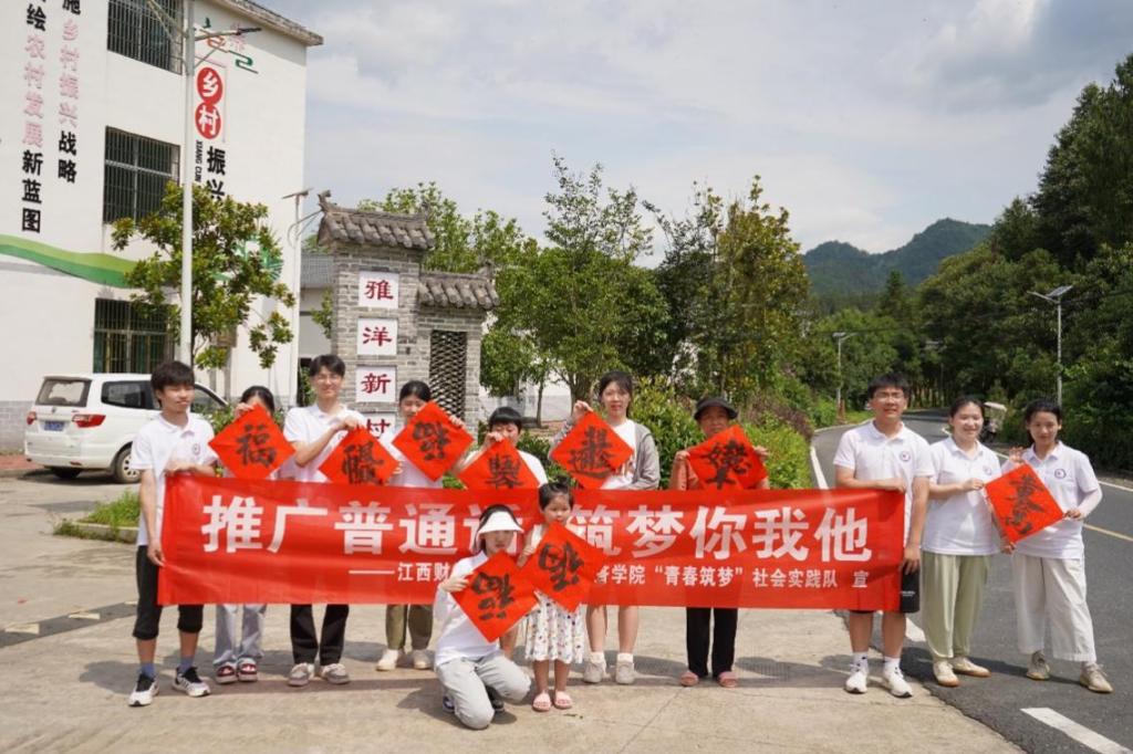 在雅洋新村,实践队员组织了一场“推广普通话,写好规范字”活动,通过诗歌朗读、绕口令以及普通话知识讲解、竞赛等内容,拉近了与村民和孩子的距离。村领导也表示,“推广普通话意义重大,任重道远。小学生是国家的未来,学好普通话非常重要。”