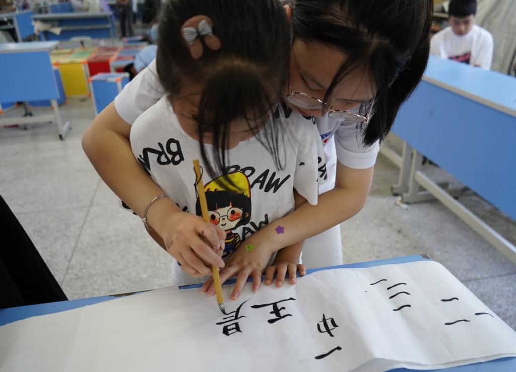 “融学于趣,育教于心”一直是实践队员秉承的理念,在课堂上围绕活动主题开展绘画、书法、象棋、朗诵等各种文教娱乐活动,给孩子们带来关爱陪伴的同时增长知识、培养兴趣。在举行的书法比赛中,由练习书法十余年的实践队员首先进行教授,让小朋友在比赛中学习书法、磨练耐心、体会乐趣,将德育和美育并重,为孩子们带来一个多彩又充实的假期。