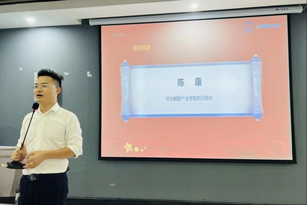 典礼现场,陈荣华在开营致辞中要求所有学员在夏令营期间认真践行“正勤敬和”校训精神,秉承“安全”、“团结”、“实效”的宗旨,顺利完成本次夏令营集训,希望同学们在集训期间勤学习、善思考,带着辩证的思维积极学习、掌握最前沿的ICT技术,努力提升自己的职业及就业竞争力,在技能竞赛和职业技能认证中再创佳绩!随后,华为鲲鹏产业学院执行院长陈康结合自身经历点出当前数字时代ICT技术的普及覆盖现状,从大学生应如何跳出自己的舒适圈展开分享,并强调了四种能力:目标管理能力、时间管理能力、复盘能力及专注力。陈康院长提出学生要不断提升自身的核心竞争力,对于暑期特训营有更清晰的认知和规划,并将目标落实到每一天,多学多思多问。