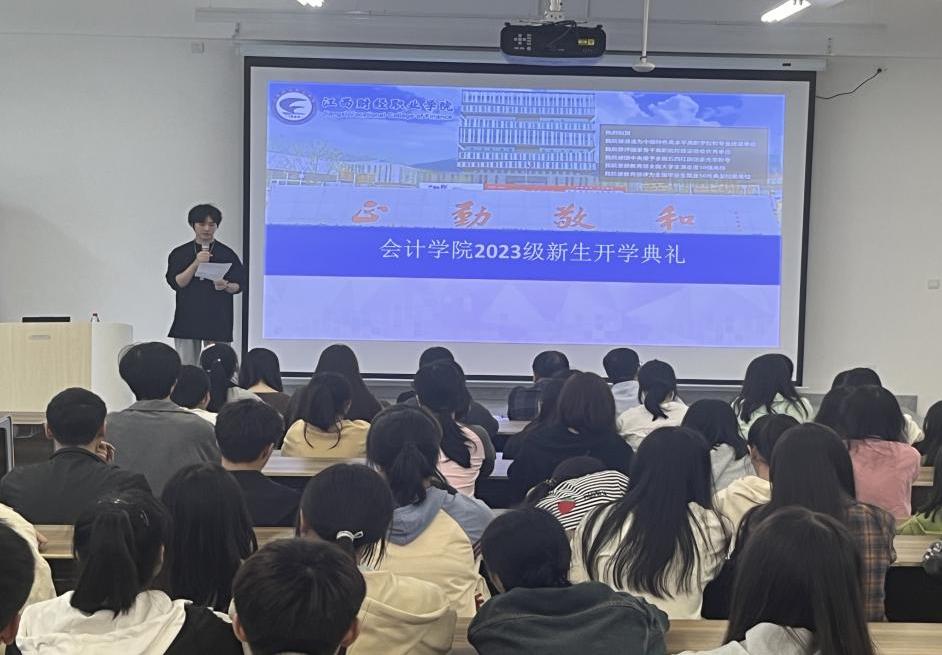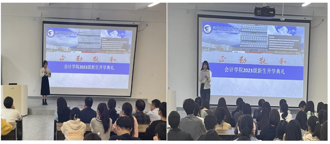 作为新生代表,23级大数据与财务管理2班的辛嘉怡同学和23级会计信息管理1班的雷若彬同学分别在会上代表发言,慷慨激昂地表达了对新学期的热情期待和战胜困难的坚定决心,表示:“作为江财会院学子,我们将不负众望,追求卓越,志存高远,以振兴中华为己任,在学习中收获成长。”