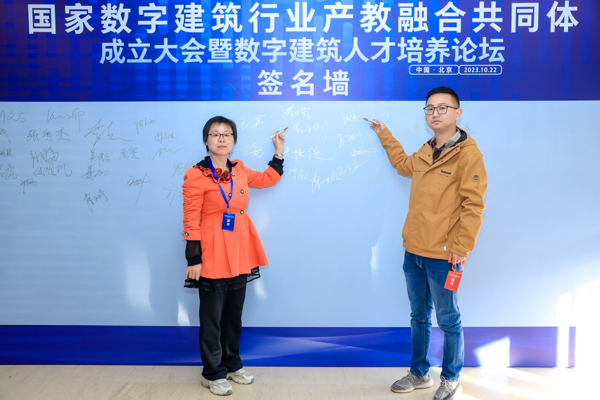 10月22日,国家数字建筑行业产教融合共同体成立大会暨数字建筑人才培养论坛在北京举行,来自全国各地的200余位行业相关领导、院校代表、企业代表等共同参加了此次盛会。住房和城乡建设部人事司二级巡视员路明,教育部职业教育与成人教育司院校发展处主任王宁,高校毕业生就业协会会长、北京语言大学原党委书记王路江,浙江建设职业技术学院校长何辉,东南大学教授、博导靳慧,广联达科技股份有限公司党委书记、董事、高级副总裁刘谦,中国工程院院士、黄河实验室主任、郑州大学教授王复明等参加本次会议。城乡建设学院挂职副院长张乐、骨干教师蔡小萍现场参会。