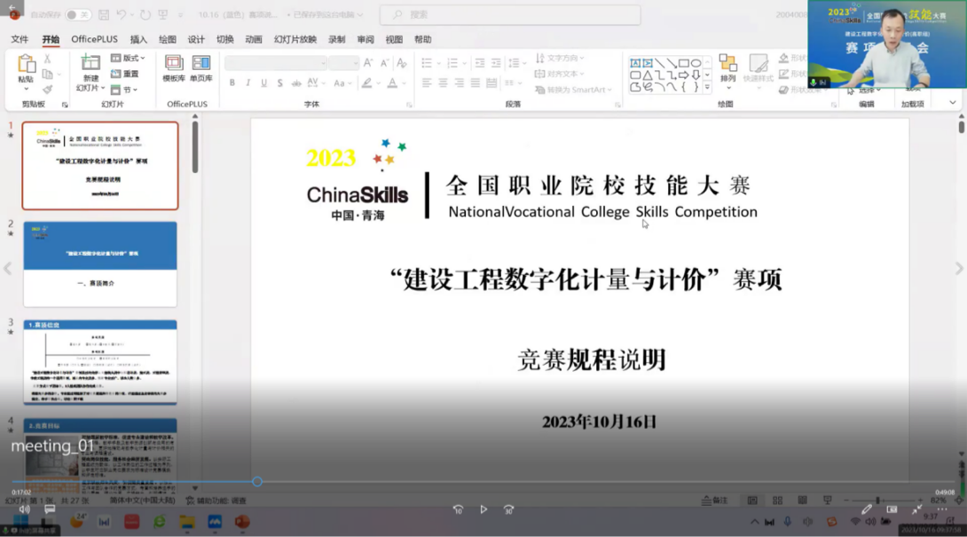 此次赛项说明会,是赛项实施的重要环节,标志着2023年全国职业院校技能大赛高职组建设工程数字化计量与计价赛项已经进入了倒计时。接下来,全体参赛选手将在10月下旬齐聚青海,共同交流、切磋提升高职学校建设工程计量与计价赛项的专业教学和竞技水平。