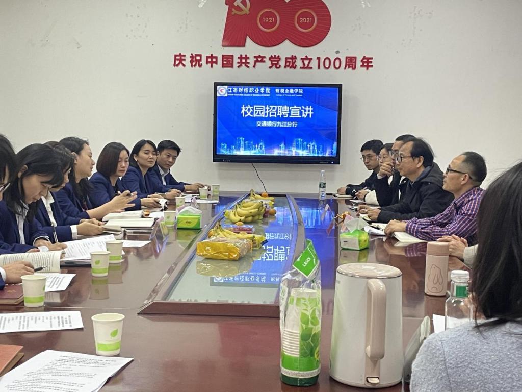 为拓宽毕业生就业渠道,做好2024届毕业生就业服务指导工作,11月8日下午,财税金融学院邀请交通银行九江分行在红楼会议室举办招聘宣讲会。宣讲会由学院党总支副书记王能翔主持,2024届毕业班辅导员参会。