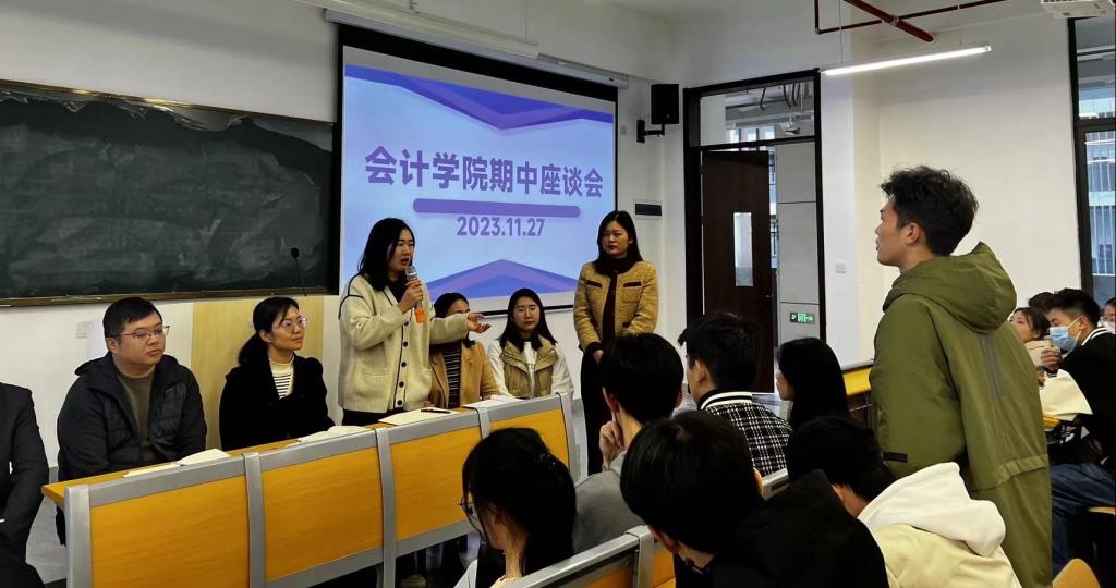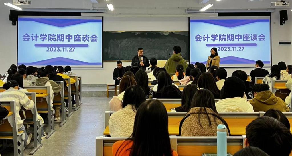 为进一步增强教学质量和管理服务工作的针对性和实效性,促进学校与学生之间的良好沟通,11月27日下午四点,会计学院在bat365正版唯一官网八里湖校区教学楼337教室组织召开会计学院期中座谈会,会计学院副院长齐洁、副书记杨燕、专业任课教师代表及23届各班代表共同参会,会议由刘俊英老师主持。